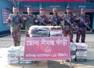 আরো জানা যায়, গত (১-৩ ডিসেম্বর) জৈন্তাপুর, সুরাইঘাট, ডোনা, লোভাছড়া ও সোনারখেওর বিওপির পৃথক পৃথক আভিযানিক টহল দল জৈন্তাপুর ও কানাইঘাট উপজেলার সীমান্তের শূন্য লাইনের নিকটবর্তী এলাকায় বিশেষ অভিযান পরিচালনা করে মালিকবিহীন অবস্থায় ৬,৩০০ কেজি ভারতীয় চিনি, ৫৪ টি শাড়ি, ১২ টি কম্বল, ০৯ টি মহিষ, ৫০৬ পিস কাশ্মীরি রুমাল, ১৬০ কেজি নিম্নমানের চা-পাতা, ০১ টি পালসার মোটর সাইকেল এবং ০১ টি ইঞ্জিন চালিত কাঠের নৌকা আটক করে। আটককৃত মালামালের আনুমানিক বাজারমূল্য ২৯ লক্ষ ৯৮ হাজার ২০০ টাকা। আটককৃত মালামালের সর্বমোট আনুমানিক বাজারমূল্য ৯৩ লক্ষ ২৭ হাজার ২০০ টাকা।